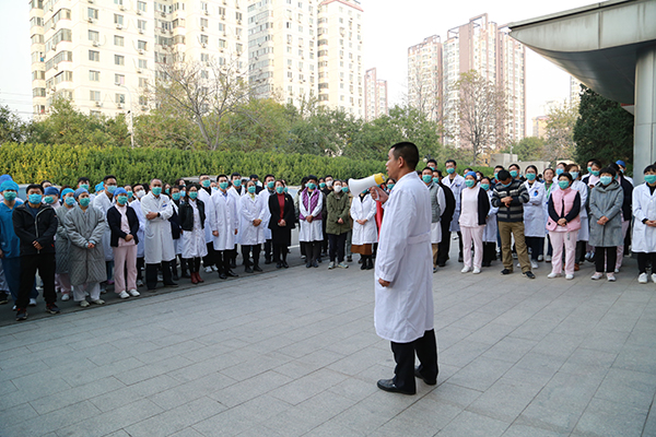 演练过程中,保卫处相关人员对灭火器、消火栓的操作使用和防烟面具的佩戴进行了操作讲解,对应急疏散的基本原则和医院消防安全管理常识进行了交流探讨。